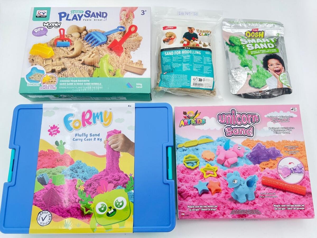 Vi har testet for indhold af asbest i 15 magiske sandprodukter købt fra det danske marked, og ingen af dem indeholder de sundhedsskadelige fibre. Her kan du se de 15 legesandsprodukter, vi har indkøbt og testet på et laboratorie: