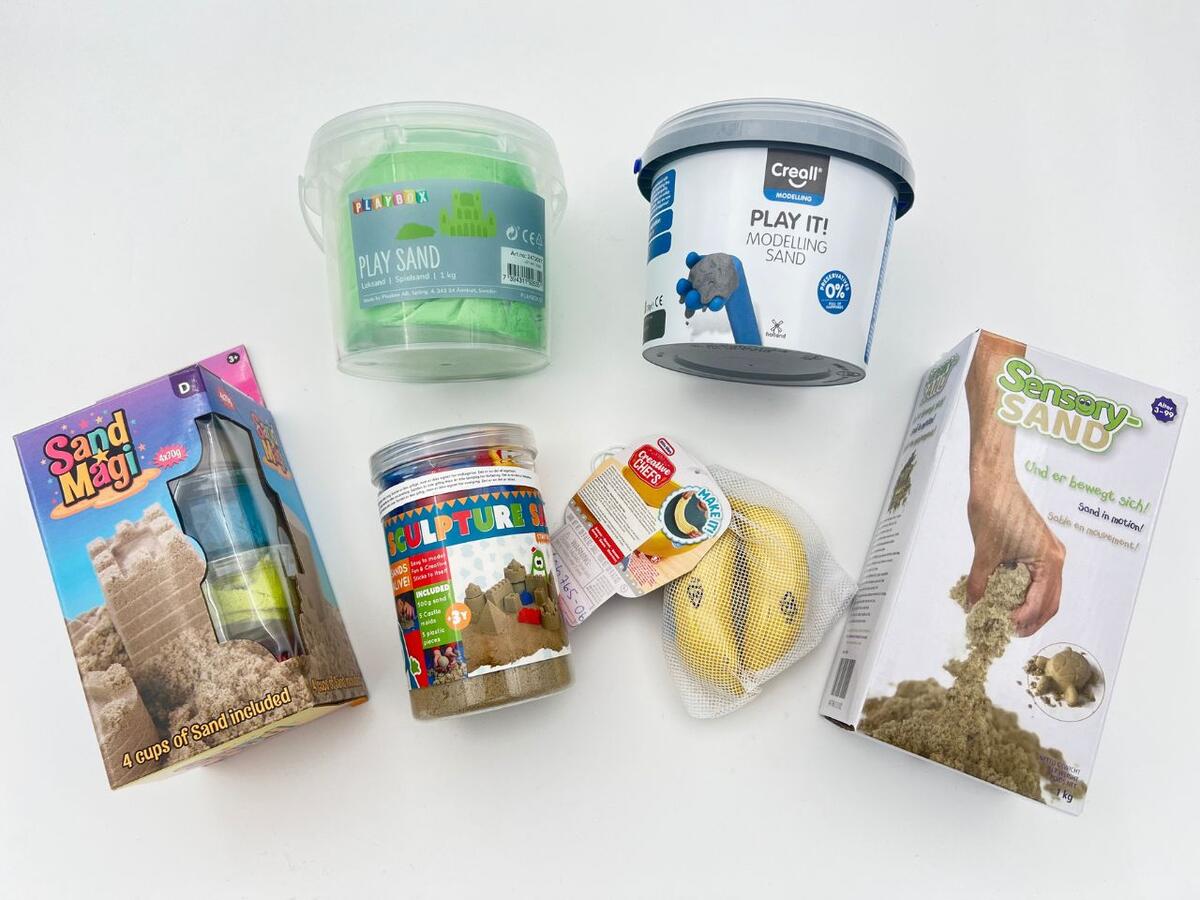 Vi har testet modelleringssand, også kaldet for magisk sand, og sandkunst eller dekorativt sand, som er en løsere form for farvet sand i flasker til at male billeder.