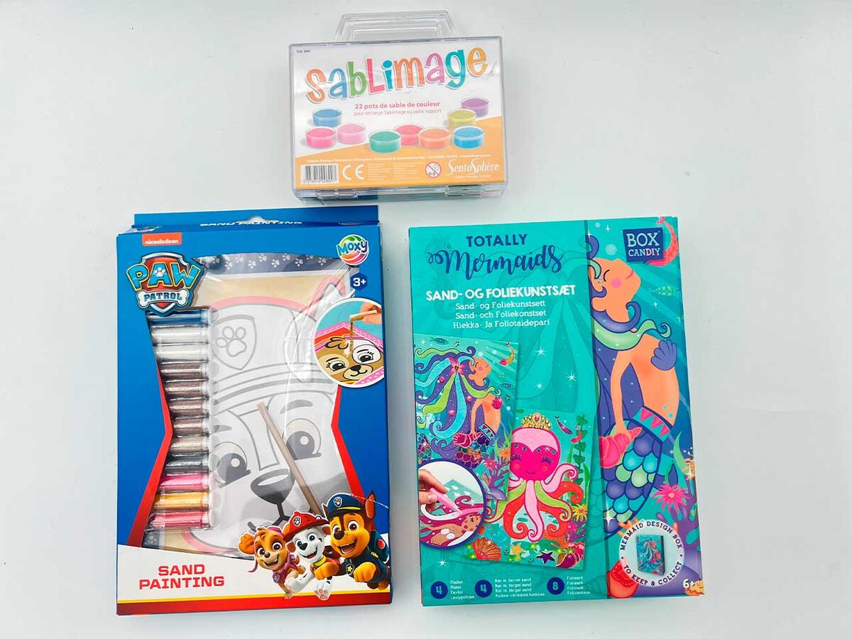 Her kan du scrolle igennem listen af sandkunstsæt fra vores test: