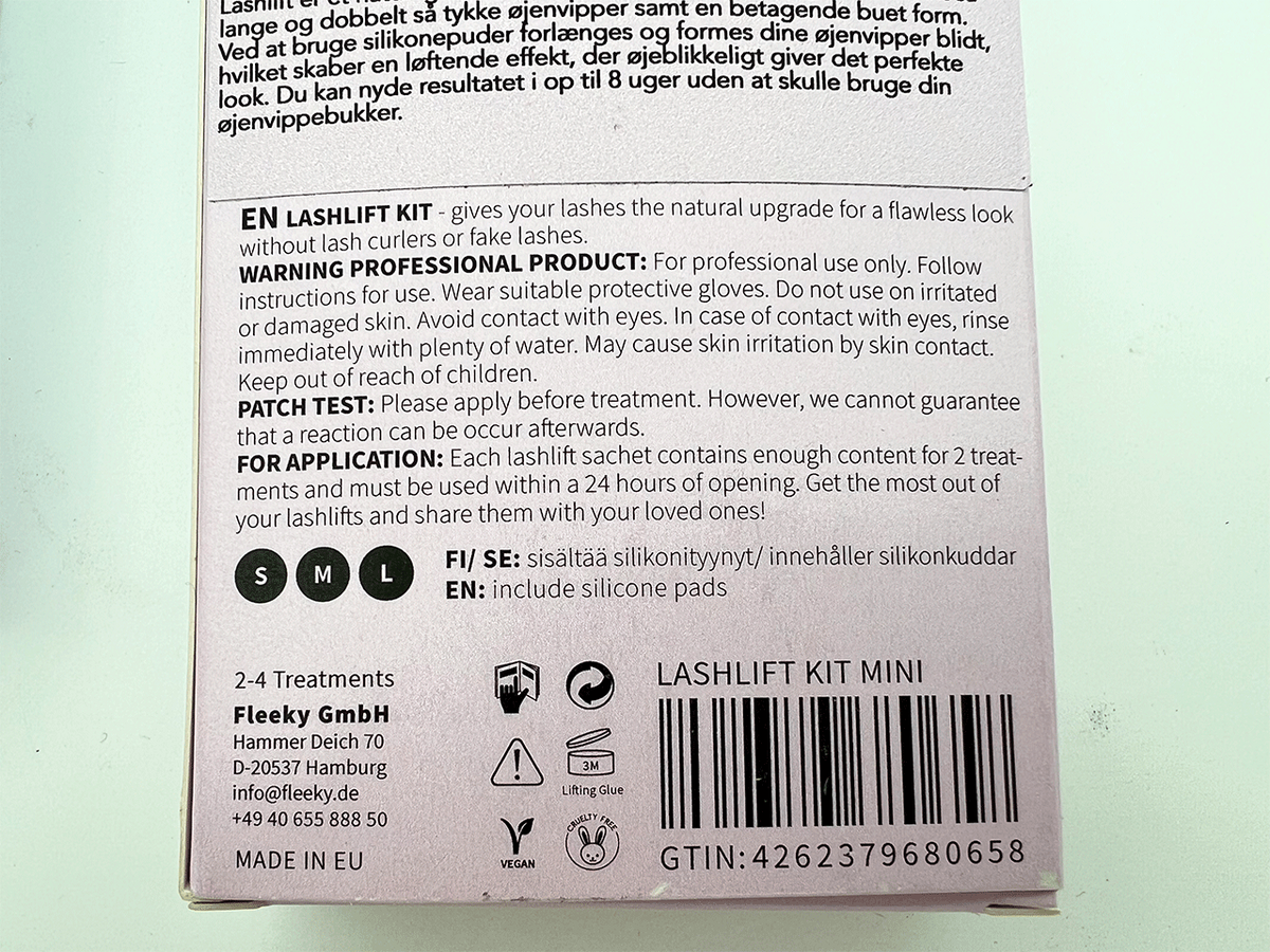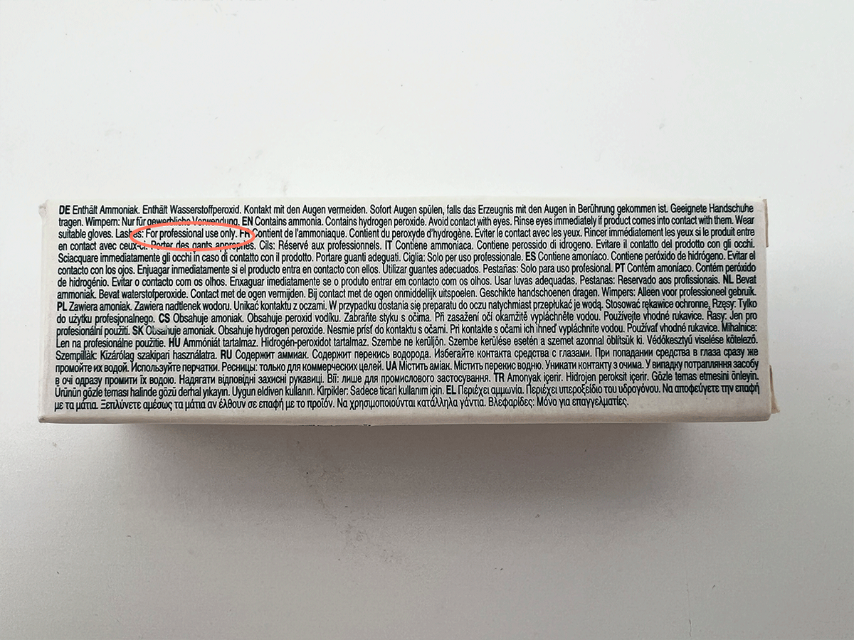“Brugen af hydrogenperoxid er tilladt på øjenbryn, da de klassificeres som hår i henhold til kosmetikforordningen. Derfor er BROW LAMINATION / BROW LIFT-produkter, der indeholder hydrogenperoxid, tilladt i detailhandlen, da de bruges på øjenbrynene. Trods ovenstående står der i brugsanvisningen at brow lamination kittet er forbeholdt erhvervsudøvere”.