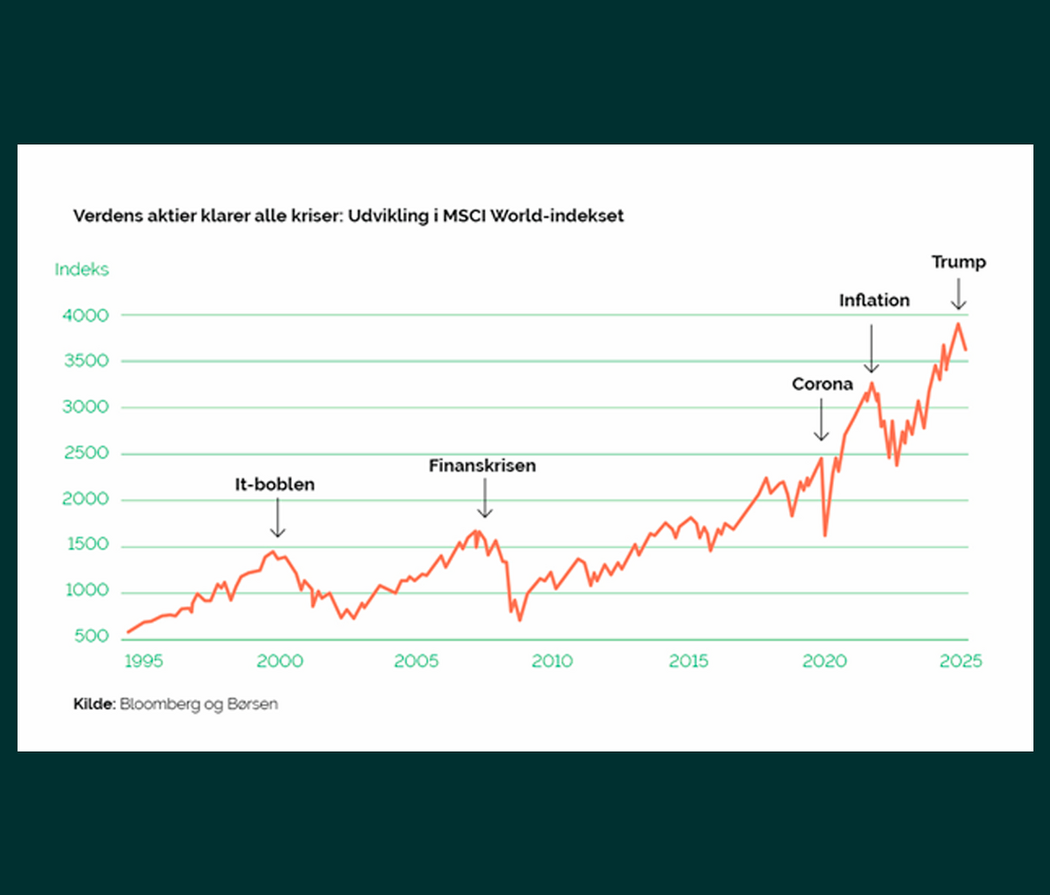 ”Når usikkerheden bliver stor – som vi har set tidligere med finanskrise og global pandemi, men også nu, hvor vi befinder os i en ny geopolitisk virkelighed med handelskrige, spændinger i Mellemøsten og krig i Ukraine – så har det en effekt på aktiemarkederne. Investorer hader usikkerhed. Når vi ikke ved, hvad der kommer til at ske, bliver vi nervøse – og så trækker vi vores penge ud,” forklarer Tine Choi Danielsen, som er chefstrateg i PFA.
