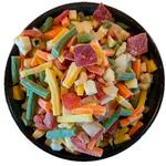 - Ingredienser Øko grønne bønner 20 %, øko rød peberfrugt 18 %, øko pastinak 18 %, øko orange gulerødder 18 %, øko gule gulerødder 17 %, øko grillet løg 9 %