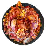 - Ingredienser 94 % grøntsager, mængdeforholdet kan variere i det færdigpakkede produkt (heraf rødløg, rød, grøn, og gul peber, rød peber, majs), 6 % sauce [blandingsolier med smag (rapsolie, solsikkeolie, naturlig aroma), vand, salt, naturlig aroma, sukker, tomat, hvidløg, røget paprika, paprika, løg, chili, koriander, oregano, timian, citronsaftpulver, solsikkeolie, røgaroma).