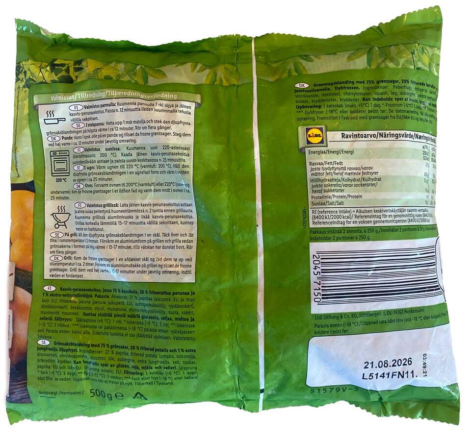 - Oprindelse Fremstillet i Tyskland med grøntsager fra EU/ikke-EU og kartofler fra EU