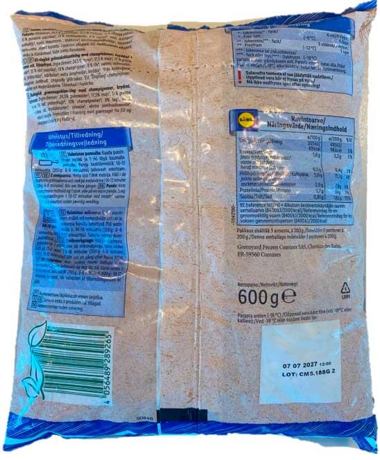 - Oprindelse Fremstillet i Frankrig med grøntsager fra EU og champignoner fra Frankrig og Holland.