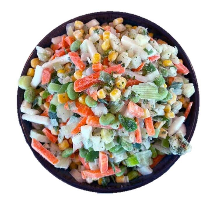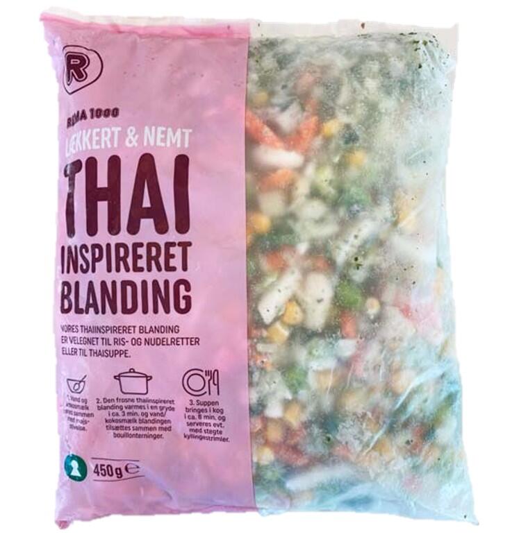 - Ingredienser 25 % porre i skiver, 20 % løg i tern, 15 % vandkastanjer i strimler, 15 % gulerødder i strimler, 12 % super søde majskerner, 9 % SOJABØNNER, koriander, citrongæs, skalotteløg i tern, ingefær i tern, hvidløg i tern, limeblade, hakket rød chili, galangarod.