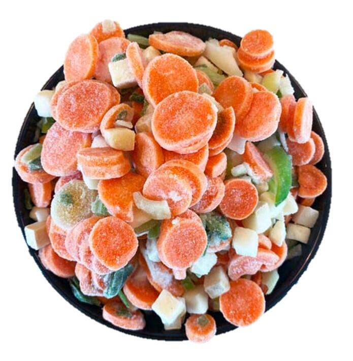 - Ingredienser 45 % gulerødder i skiver, 30 % porreringe, 25 % SELLERI i tern